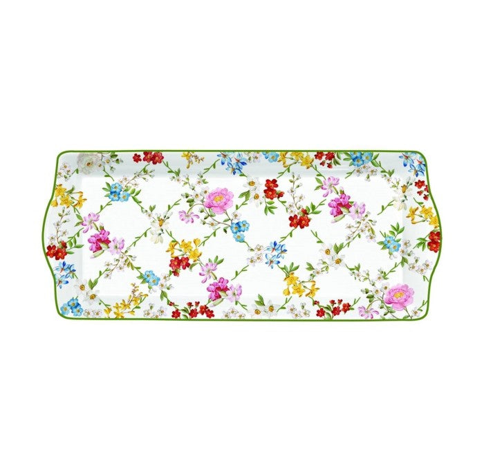 Fuente de porcelana decorada con patrón de flores estilo cottage, es perfecta para poner canapés o pastelitos en tu mesa. También es ideal como decoración. Seguro que le encontrarás el lugar idóneo dentro de tu hogar.  Viene embalada en su caja de cartón con el mismo estampado.