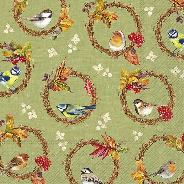 Servilletas decoradas Pajarillos en fondo verde 20 uds.